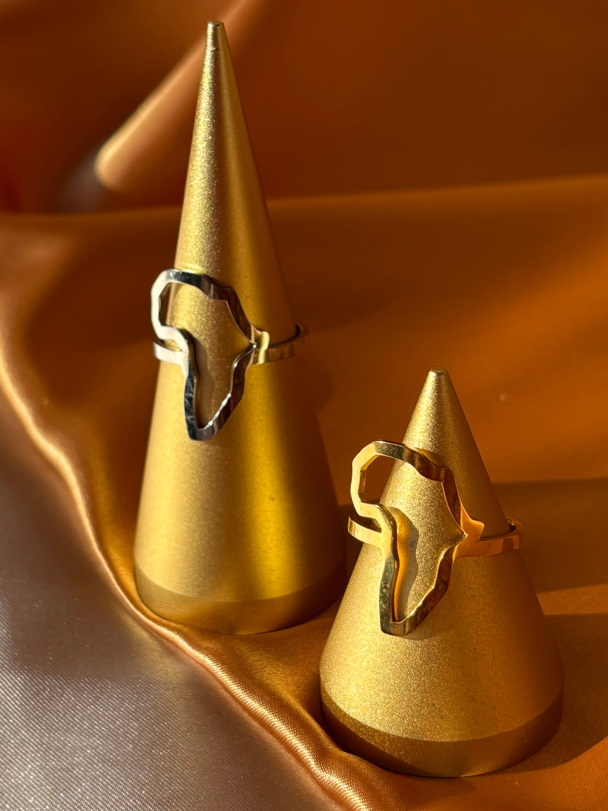 Crafted with durable stainless steel, the Africa Ring offers a timeless and adjustable accessory for your wardrobe. Its sleek design and material ensure long-lasting wear. Elevate your style with this expertly crafted piece.