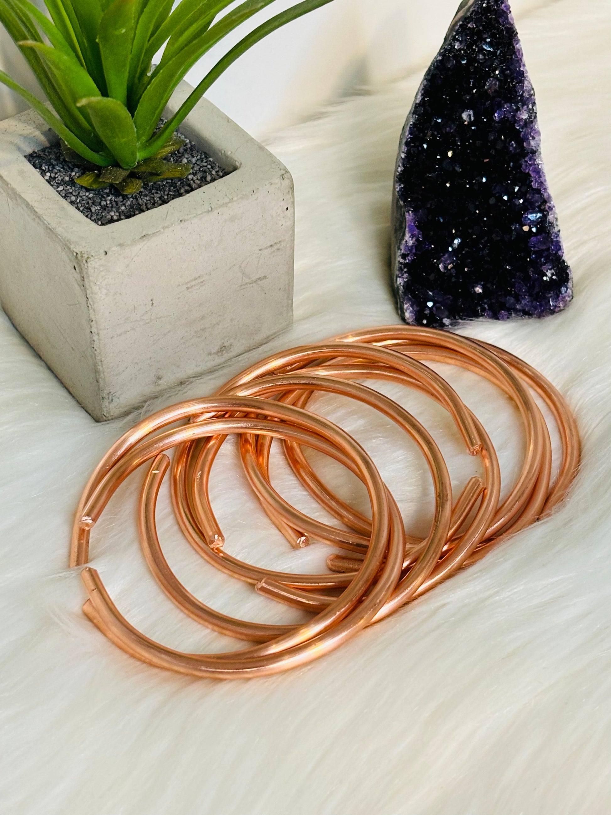 This handmade bangle bracelet is crafted using high-quality, bare 6 gauge copper wire. The malleability of copper allows for a comfortable, customizable fit, while the properties of copper are associated with anti-inflammatory and antioxidant benefits. A beautiful and beneficial addition to any jewelry collection.