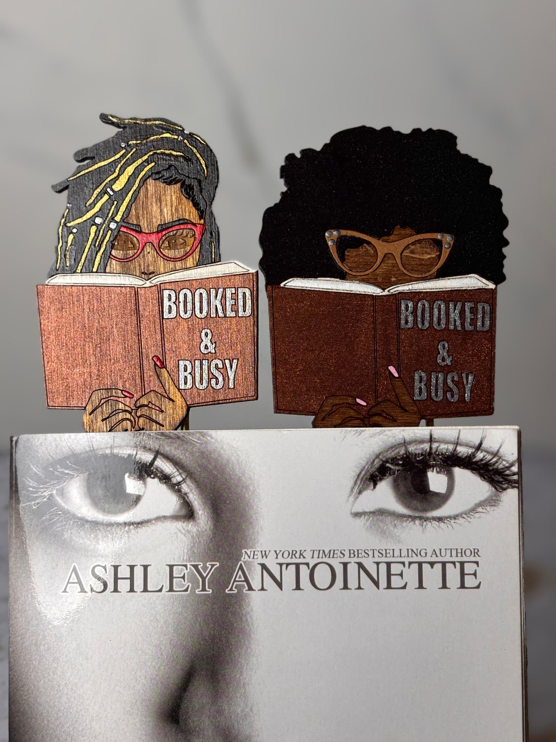 Each bookmark is laser-cut and hand-painted on lightweight birch wood, featuring unique characters like The Turbaned Muse, The Afro Scholar, The Loc’d Luminary, and The Pixie Visionary.