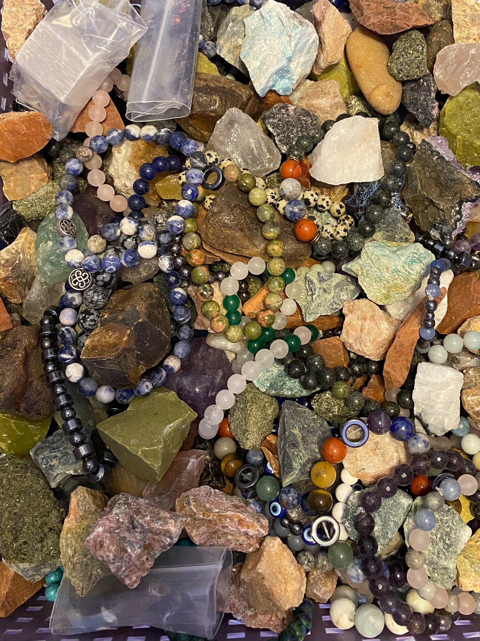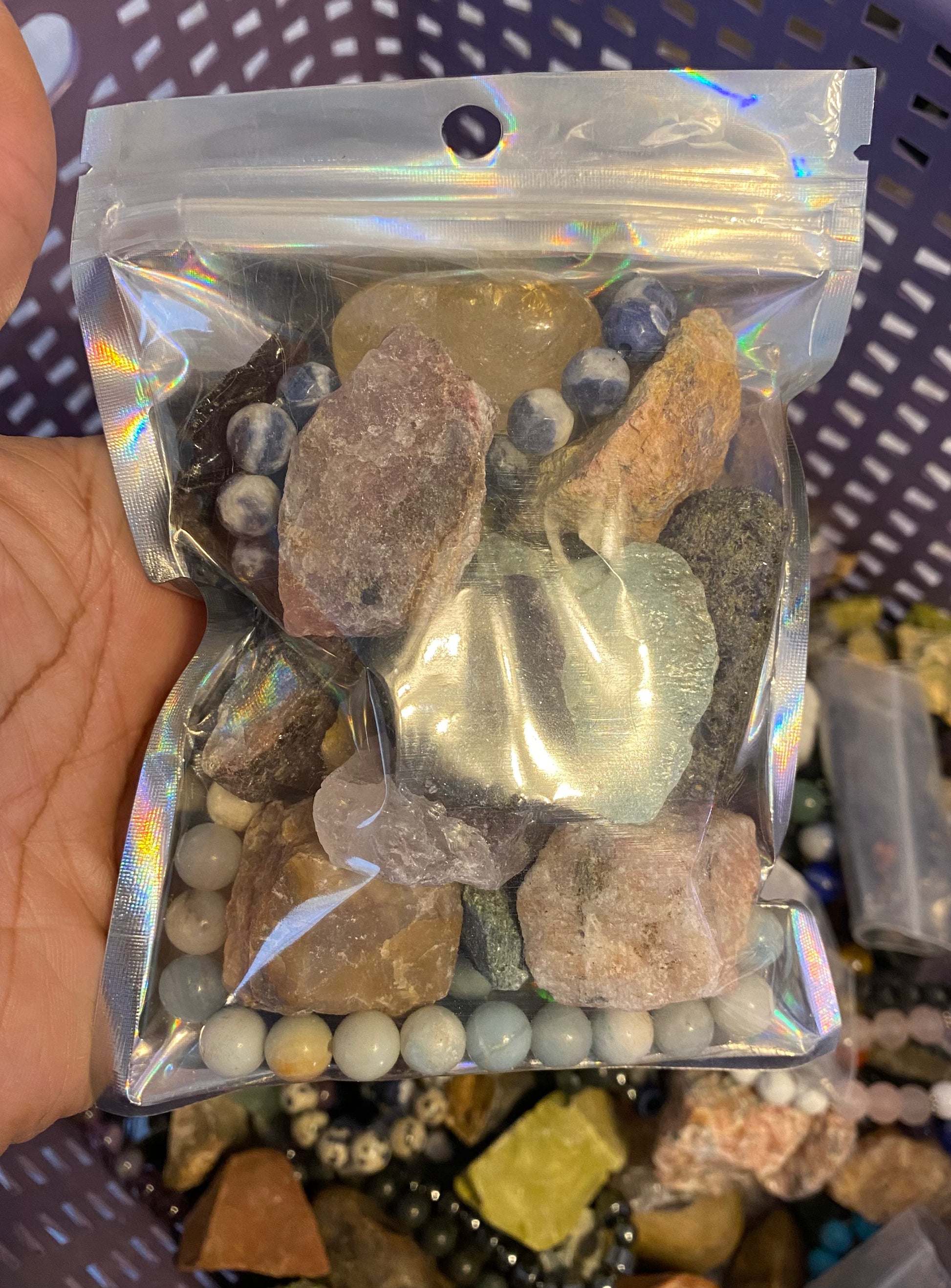 Discover the mystery inside the Crystal Mystery Scoop! With a mixture of raw and tumbled crystals, necklaces, bracelets and rings, you can find a unique surprise in every scoop. Get creative and enjoy the adventure!